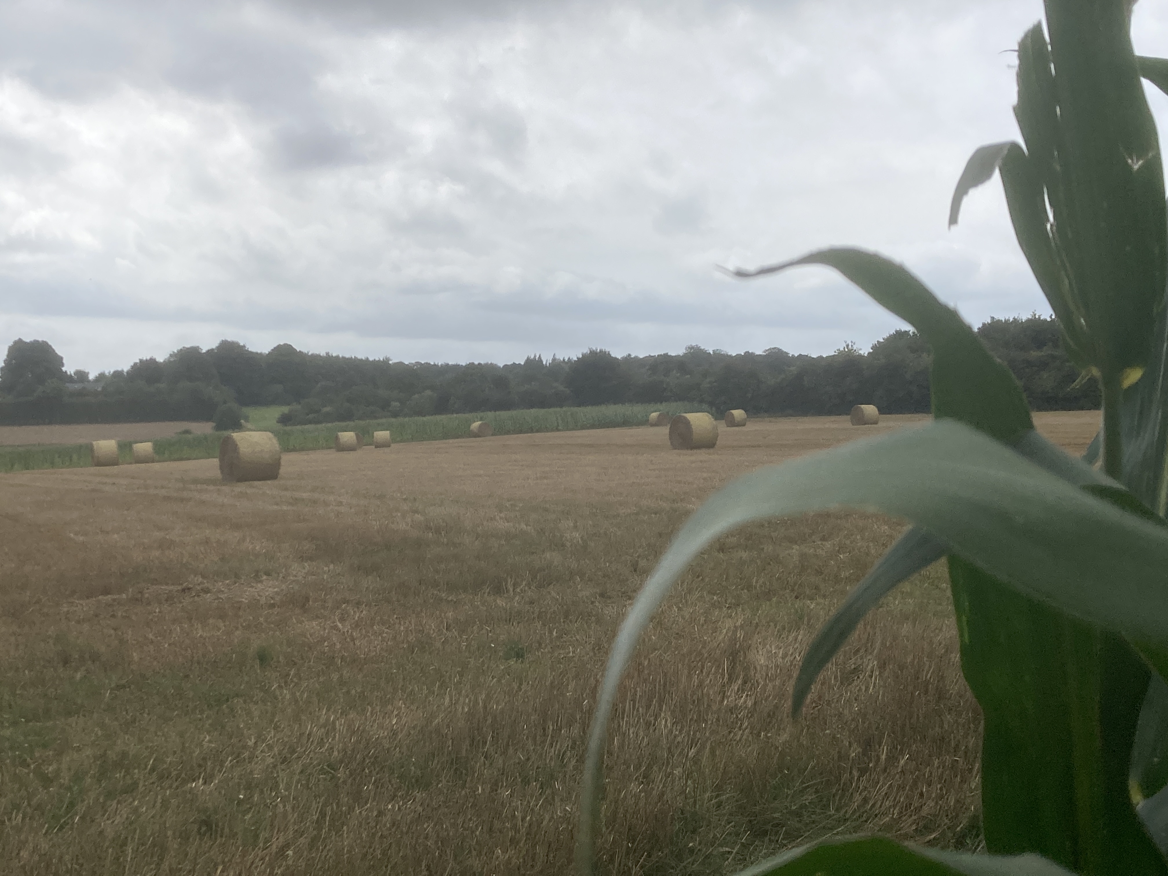 Mais le paysage était superbe sur cette étape. Une alternance de champs avec la paille coupée en ballot, le vaches etc et de la forêt 🤩