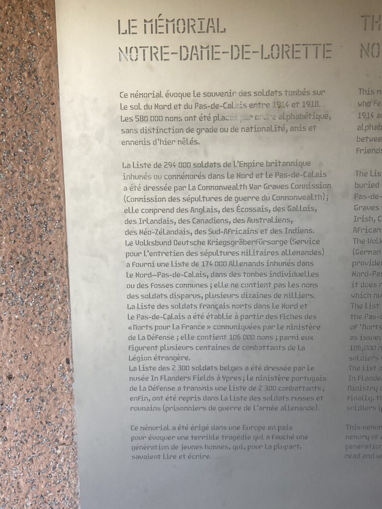 A l’arrivée je suis passé à coté du mémorial de Notre Dame de Lorette.
