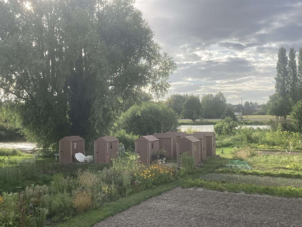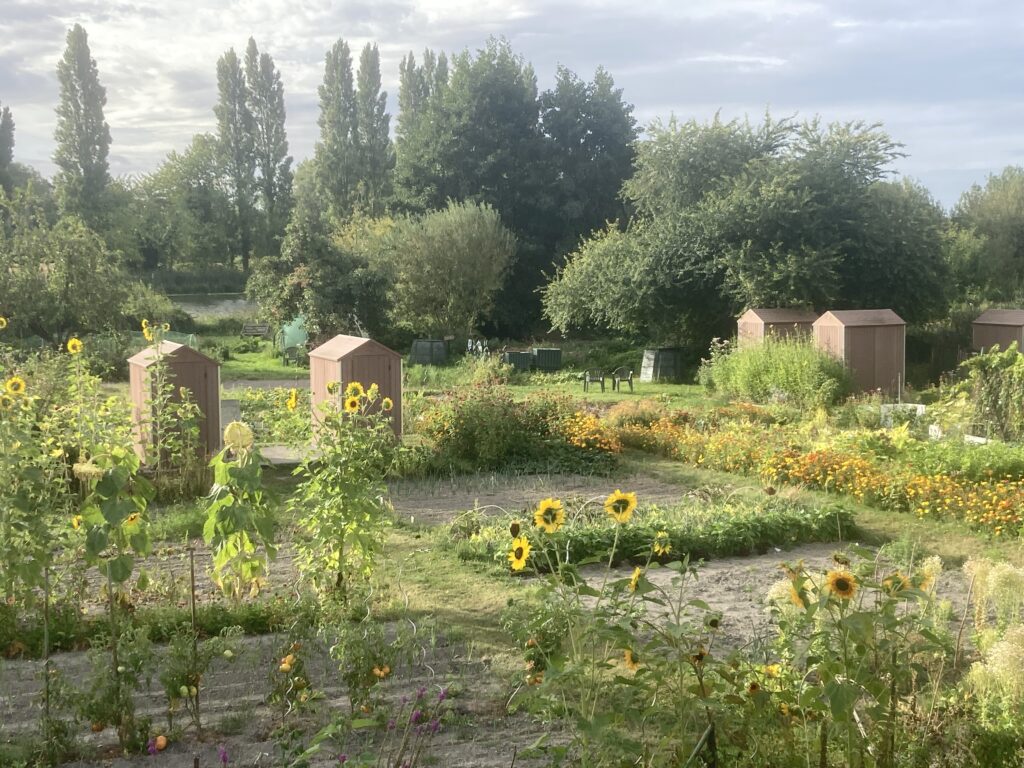 Des jardins verdoyants à la sortie de Péronne.